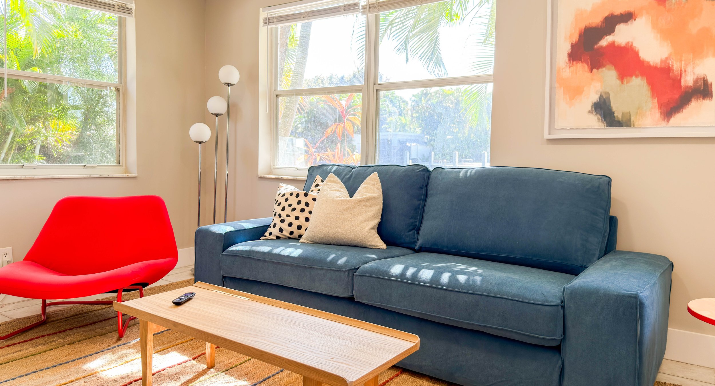 With wood furnishings, rich jute rugs, and a palette of vibrant blues and reds, it’s a serene retreat close to the buzz of Wilton Drive.